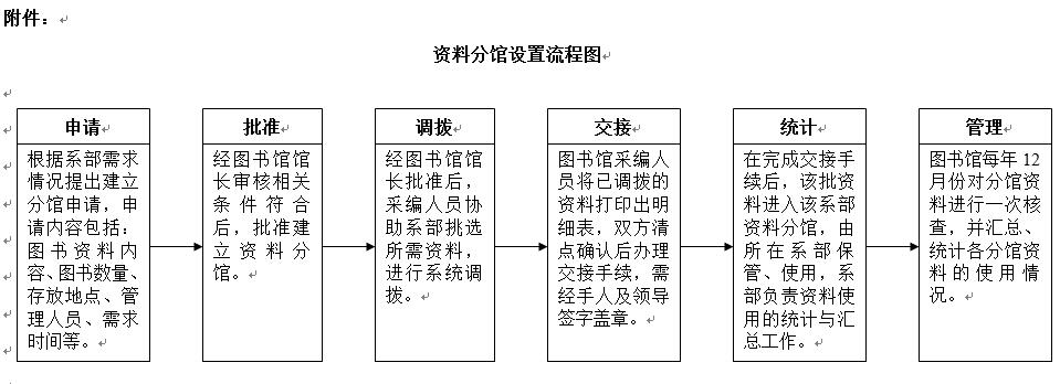 第一条 为满足学院各系部教育、教学及科研的要求,图书馆可在有需求的部门设立资料分馆,将所需的专业图书、教辅资料等划分到相关系部进行使用和管理。