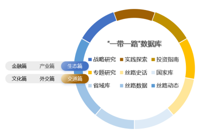 “一带一路”数据库下设战略研究、实践探索、投资指南、专题研究、丝路数据、丝路史话、国家库、省域库、丝路动态9个一级子库。其中专题研究包括交通篇、产业篇、金融篇、生态篇、外交篇、文化篇6个主题。