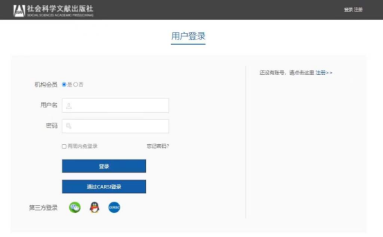 2若您开通的是账号密码流方式,请点击右上角的登录按钮,在“机构会员”处勾选“是”(如下图),输入开通的机构账号、密码,点击登录。登录成功后,网页右上方会显示您的机构名称。