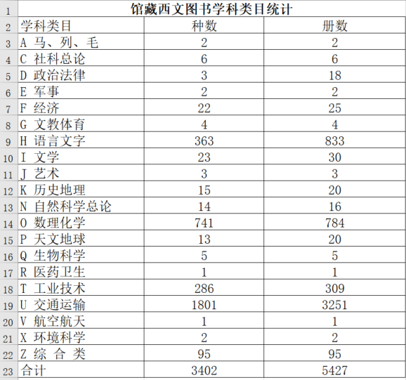 获捐图书情况统计: